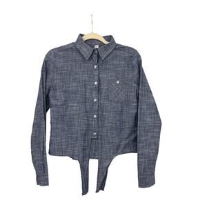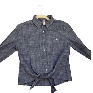 Love Notes Blue Chambray Style Tie Front Long Sleeve Shirt Size Women's Small