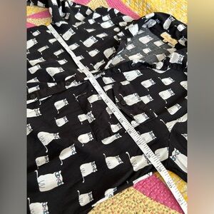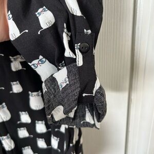 Love Notes Cat Print Black and White Button Down Shirt Tie Front Size M