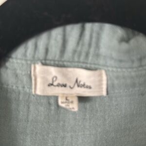 Love Notes Cotton Gauze Blouse Womens L Cropped Boxy Sage Green Beach Bohemian