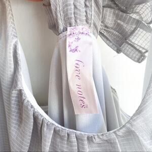Gray with teal undertones, Ruffle detail on back, elastic waist.