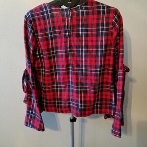 Love Notes Red Plaid Embroidered Bell Sleeve Top Medium