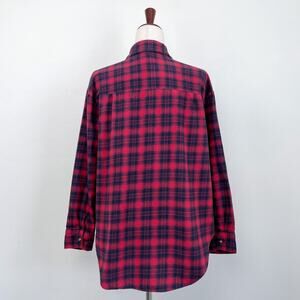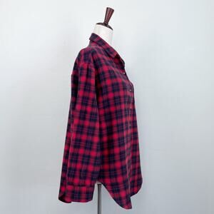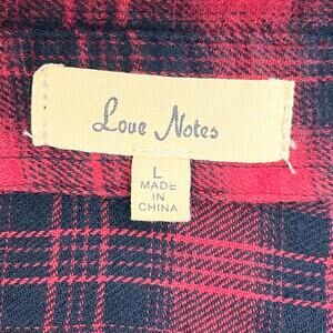 Large Love Notes button-up shirt. Soft red and black cotton flannel fabric. One chest pocket. Gently worn, nice pre-owned condition!