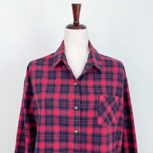 Love Notes Red Plaid Flannel Oversized Button-Up Shirt