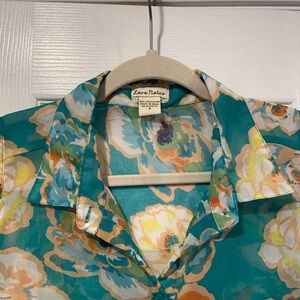 Love Notes Size S Turquoise Floral Sheer Button Down Sleeveless Top
