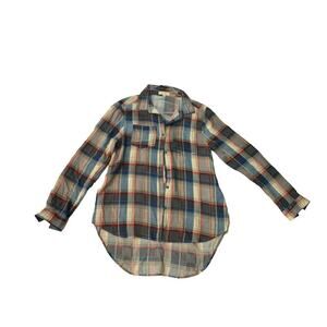 Love Notes Tunic Button-Up Shirt Women Size L Multicolor Plaid Long Sleeve Rayon
