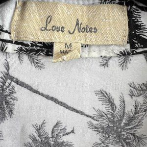 Love Notes Vintage Palm Tree Print Black & White Cropped Button Down Top Size S