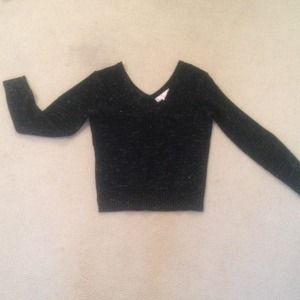 Black sweater with specs of gold threading, long sleeves, V cut in front AND back, extremely soft, never been worn, very cute for girls night out!!