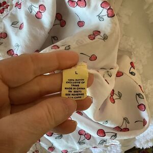 Adorable cropped rayon button down in extra cute cherry print. Size large.