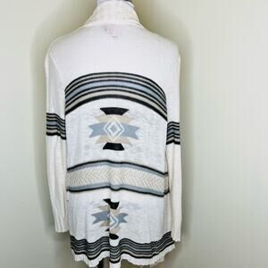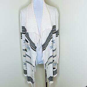 Love On A Hanger Cardigan Medium Cream Boho Aztec Southwestern Fringe Knit Open