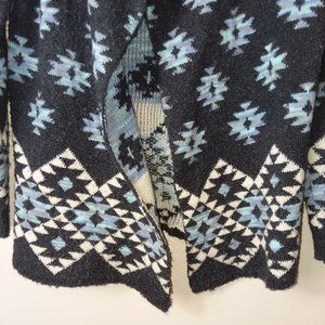Love On A Hanger open front cardigan sweater in a Western Aztec print. Women's size small. Sweater is a nubby knit.