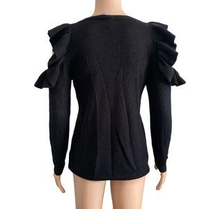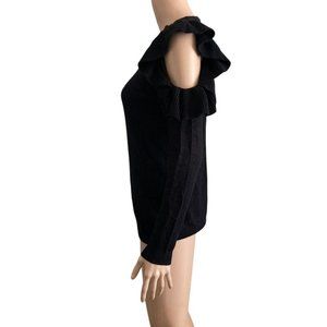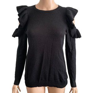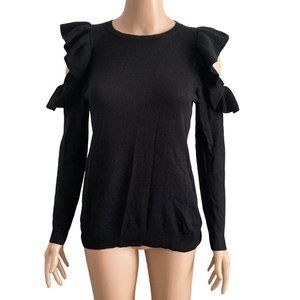 Love On A Hanger Sweater Womens XS Black Ruffled Cold Shoulder Pullover