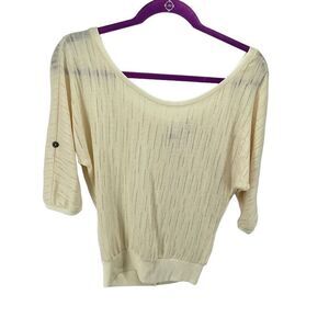 Love On A Hanger Womens Roll Tab Sleeve Shirt Faux Button Scoop Neck Cream Small
