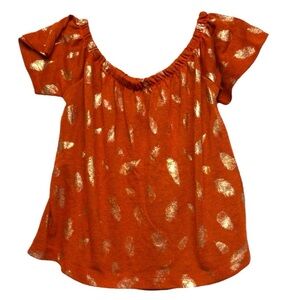 This vibrant orange blouse from Love features elegant flutter sleeves and a smocked design, offering a stylish and comfortable fit. The lightweight fabric and flowy silhouette make it perfect for a casual day out or a festive gathering. Its unique pattern adds a touch of charm to any outfit.