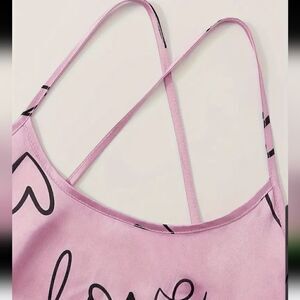 "Love" Printed Pajamas Sleep Dress with Cross Back and Round Neck, Sleepwear and Dresses for Women.