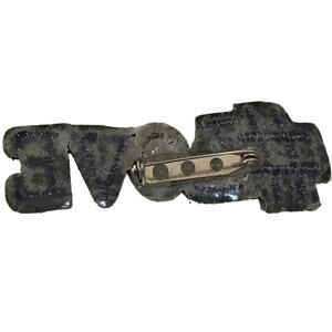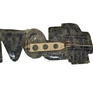 Item is in fair condition. Wear and tear can be seen in the pictures. There are some cracks in the material on the back of the pin. There is not much connecting some for the letters and makes this pin feel very fragile.