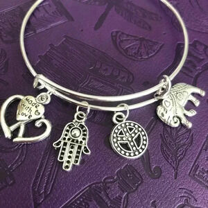 Handmade by me! The bracelet is made of high polish stainless steel, the charms are made of zinc alloy. Heart, peace sign, hamsa, hand, elephant, Indonesian. Bundle and save. I ship fast!