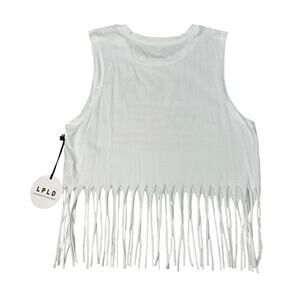 Love Peace Lazy Days USA Flag Tank Top L White Fringe Crewneck Cotton Pullover