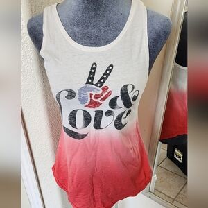 Embrace a casual and stylish look with this Love & Peace ombre tank top. Featuring a vibrant red and white gradient, it's perfect for any relaxed occasion.