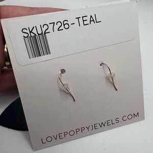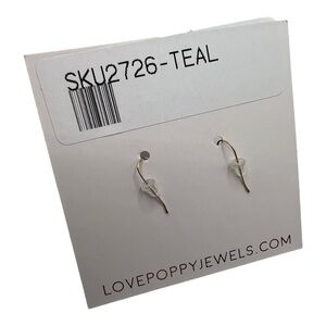 Love , Poppy Teal Green Leather Teardrop with Druzy Stone Earrings NEW