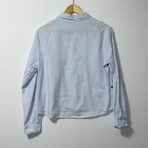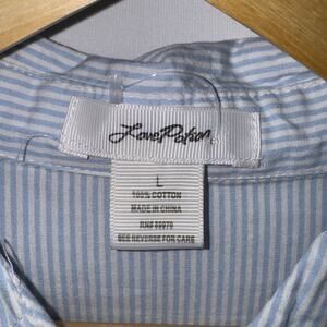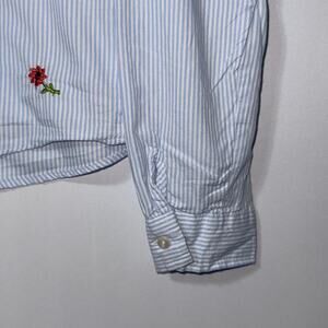 Love Potion Blue & White floral Striped Button Down Shirt women’s Size Large