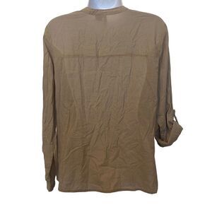 đ șLove Potion EUC Tan Henley Embroidered Tab CuffâLongâSleeveâBlouseâSzâM