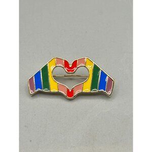 Love Pride Rainbow Pin Brooch Tack Pin Colorful Enamel Hands Heart Shaped