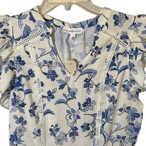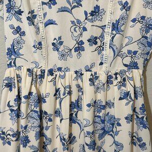 Love & Promises Blue & White Floral Dress with Short Ruffle Sleeves - Size Small