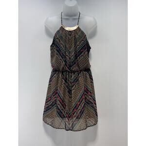 Love Reign Geometric Print Halter Spaghetti Strap Dress Green Red Women’s Size S