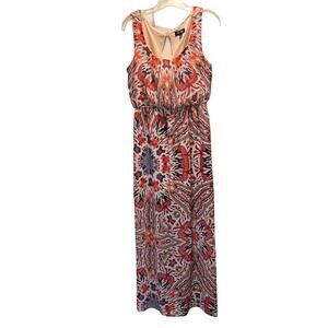 Love Reign Geometric Print Maxi Dress Size M Scoop Neck Sleeveless Front Slit