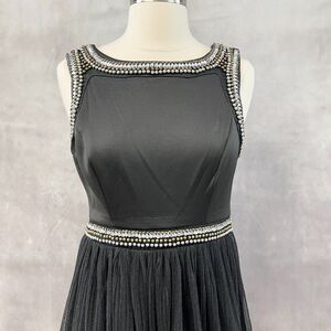 -Features: Scoop neckline, sleeveless, tulle over skirt