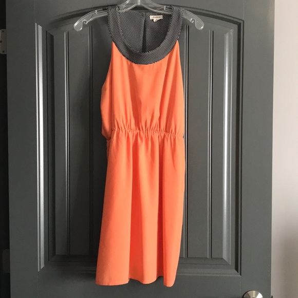 Beautiful orange dress with awesome neck line. Only worn a few times. Great condition.