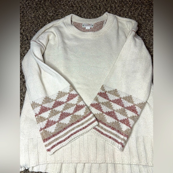 Elegant cream sweater with stylish triangular design. Soft and cozy for fall and winter. Super cute, in great condition. Only worn a couple of hours, basically new condition