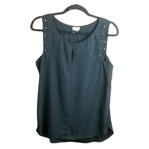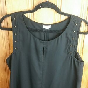 Love Riche black tank top Gold hardware accent on shoulders Front key hole Length: 26 1/2" Pit to pit: 18 1/2" Great condition 0258