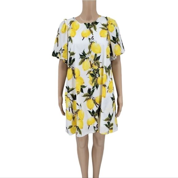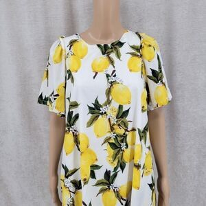 Love Riche White with Yellow Lemons Cotton Midi Dress Women's Large