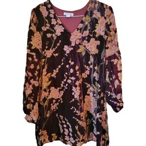 Love Riche Wine Velour Floral Dress Size Medium