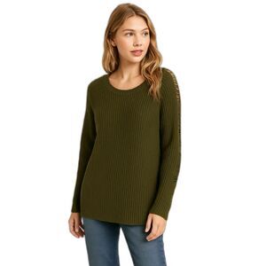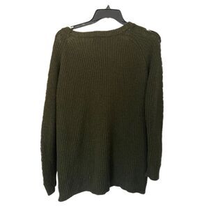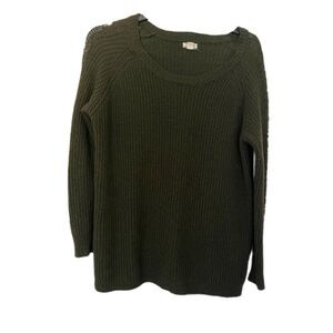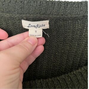 Love Riche cotton/wool blend distressed SLEEVE sweater SIZE S OLIVE GREEN