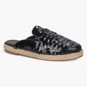 Add a touch of sparkle to your wardrobe with the Glitz Sequin Espadrille Mules. These dazzling women's slip-on shoes feature a shimmering sequin upper and a classic espadrille sole for a stylish and comfortable look.