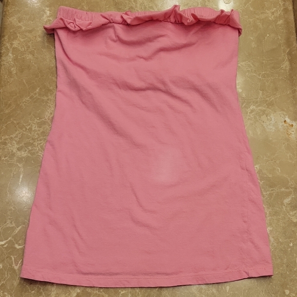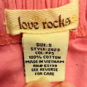 Chic pink top by Love Rocks. Crafted from soft cotton. Built-in bra top. Some fading on mid-front, otherwise, good condition.