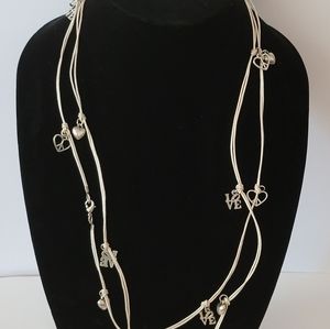 This is a 52 inch long love necklace. The necklace can be adjusted for different styles and turned into a bracelet or anklet. This is a fun piece with numerous charms on it.