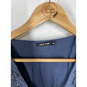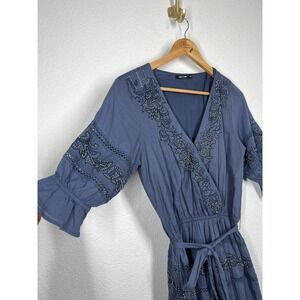 Love Sam Beaded Embroidered Boho Dress Small Dark Blue Ruffle Lace Anthropologie