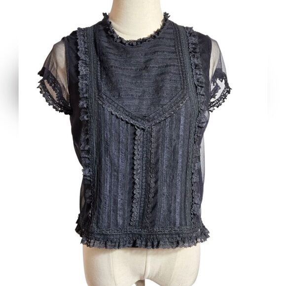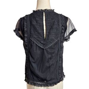 Love Sam Black Victorian Boho Lace Trim Blouse Top