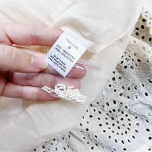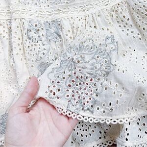Gorgeous midi dress by Love Sam (sold at Anthropologie). “Lucy In The Sky” style in cream cotton eyelet with metallic silver floral embroidery & cream beaded accents. Style no LSH18-6052. Bust 33-36“, waist 24-31“, length 44“. Size S, excellent preowned condition.