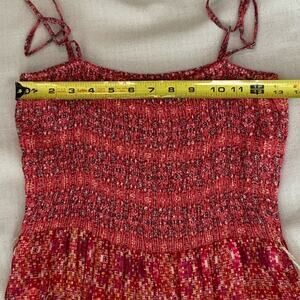 Fun flowing dress, gently used condition. smocked top with adjustable straps. Women's small with measurements in pictures.
