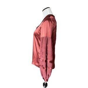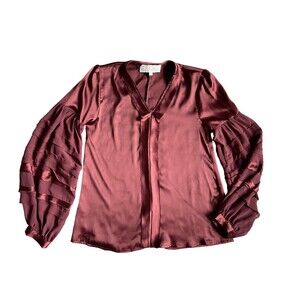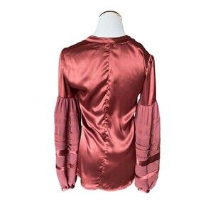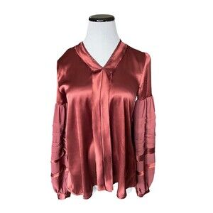 Love Sam Satin Blouse Size S Copper Brown Balloon Sleeve Sheer Insert Boho Fall