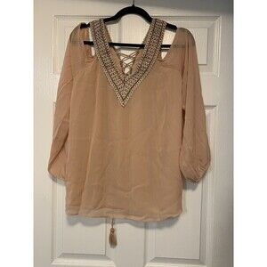 Love Sam Top Size Small Rosewater Cold Shoulder Pullover Blouse Bishop …