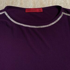 Love Scarlett purple blouse with rhinestones on neckline and down sleeves. Size small
