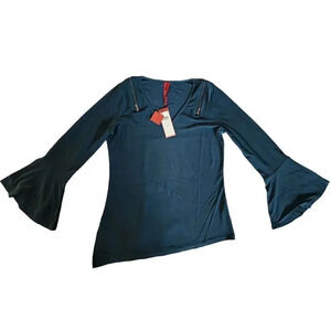 Love Scarlett Womens Dark Teal Polyester V Neck Pullover Blouse Top Petite Small