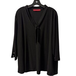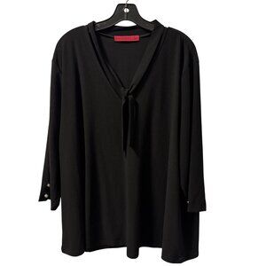 Love Scarlett Womens Top Sz 3X Black Tunic With Tie Neck & Button Cuffs