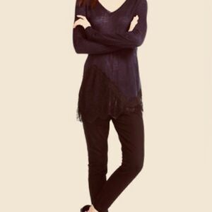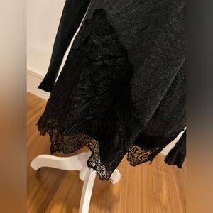 Love, Scarlett, women’s V-neck, lightweight wool and linen sweater, beautiful lace detail, excellent condition, size medium. JL