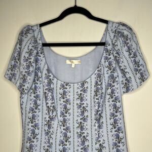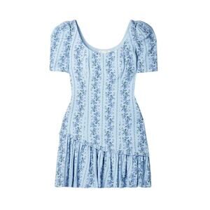 Love Shack Fancy Blue Solus Ruffled Floral Crepe Mini Dress Size 10